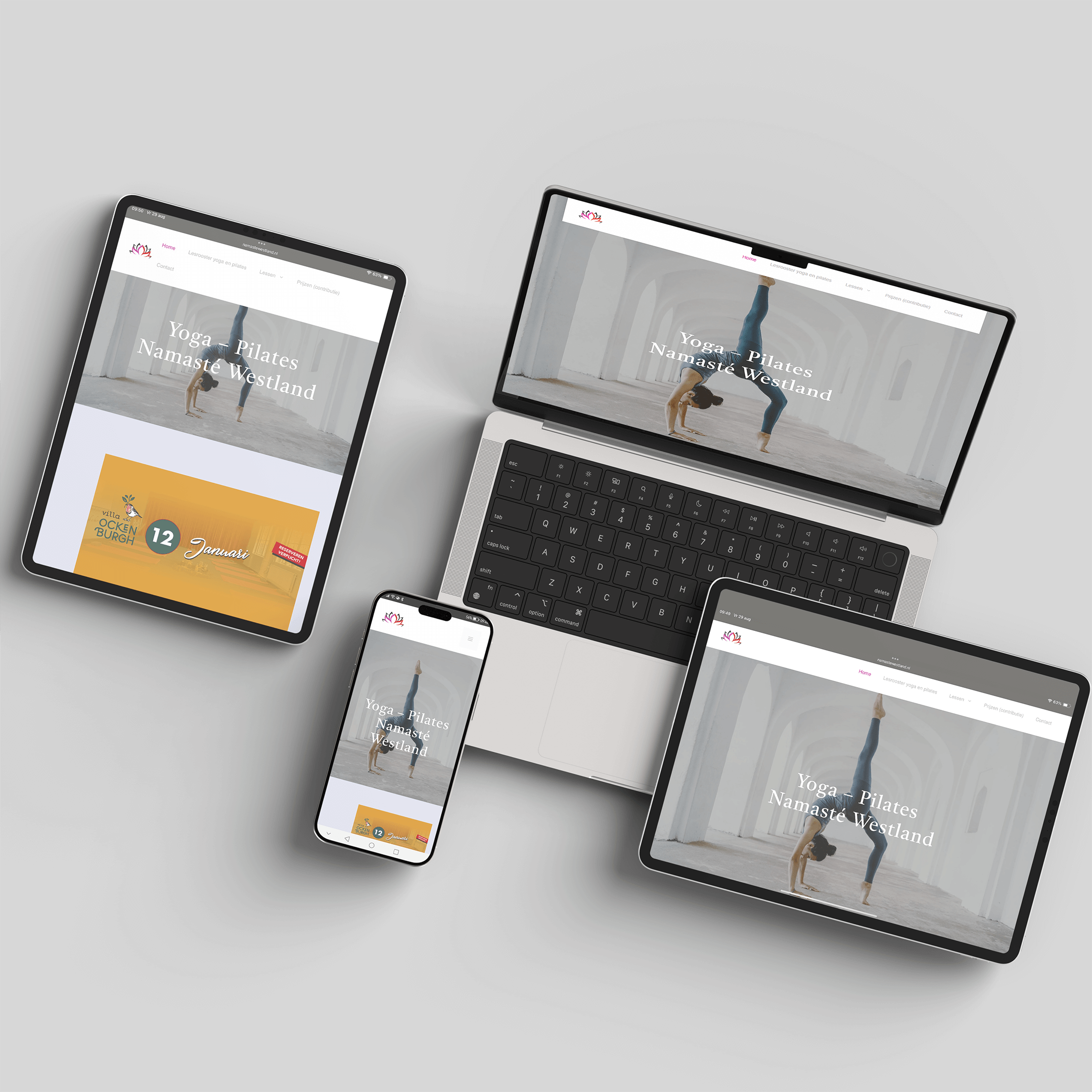 De website op de afbeelding is gemaakt voor Yoga en pilates Namasté Westland (in Westlandtheater De Naald en bij bedrijven op locatie).